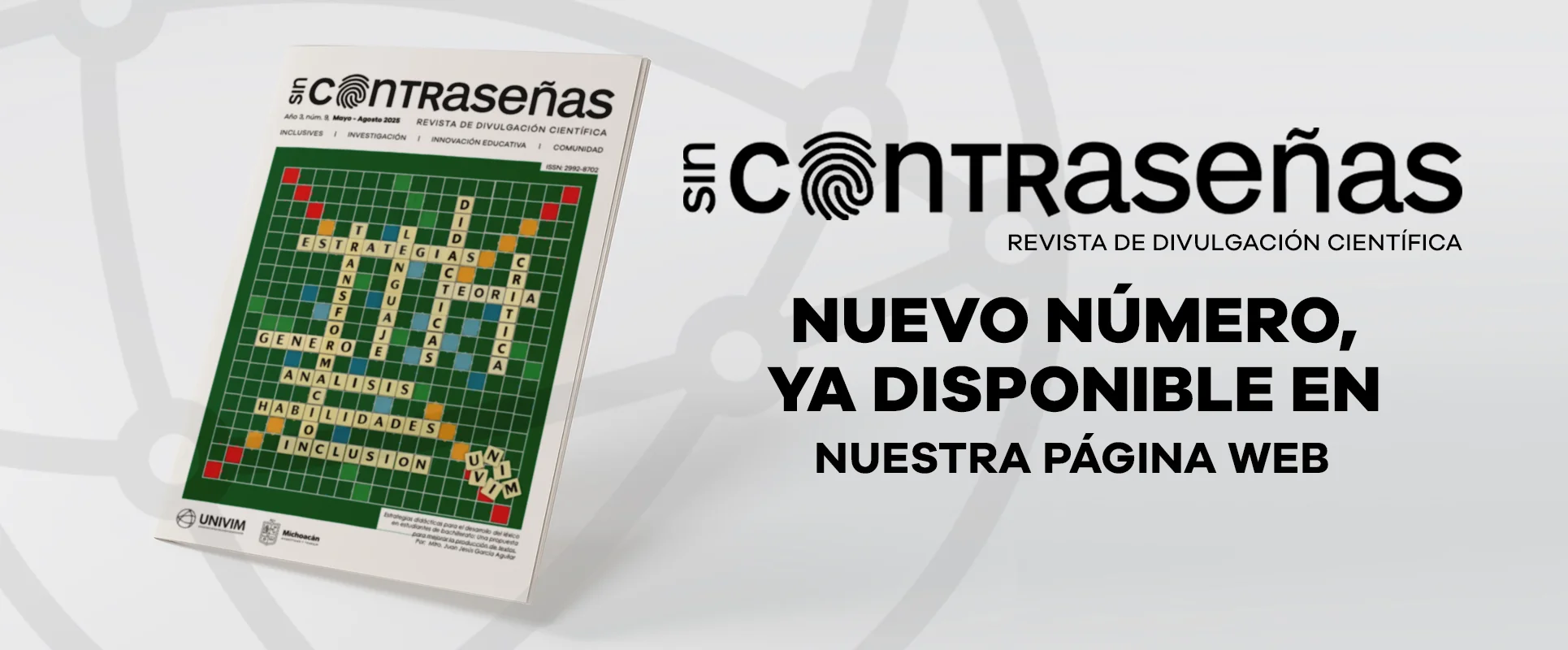 Autores: La Revista Sin Contraseñas publica artículos de divulgación científica en un formato digital de manera periódica cuatrimestral. Es de acceso gratuito, elaborada desde la Subdirección de Investigación e Innovación de la Universidad Virtual del Estado de Michoacán, orientada a la divulgación del quehacer científico como una tarea que busca educar, inducir a los lectores para acercarse a la ciencia y de esta manera contribuir al establecimiento de una cultura democrática en la sociedad, promoviendo el civismo y la coherencia intelectual.